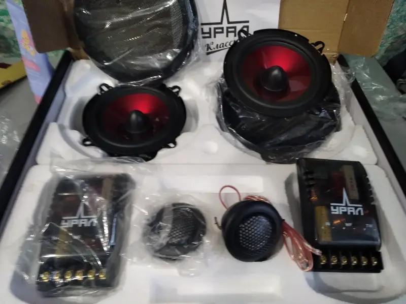 Комплект – 6,5" НЧ/СЧ динамик - 2шт, 25 мм. твитер - 2шт, декоративные защитные сетки - 2 шт, кроссоверы - 2 шт. новые могу выслать