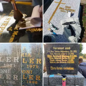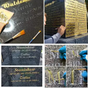 Восстановление надписи, текста на памятнике, обновление портрета, покраска, позолота букв, нанесение защитного гидрофобного покрытия (текст и портрет виден в дождь) Исправить букву на граните, мраморе. Убрать ошибки на памятнике. Уборка могилы в Минске и Минской области, прополка сорняков, подсыпка, очистка гранитного, мраморного, бетонного памятника от мха, лишайников, высолов на кладбище в Минске