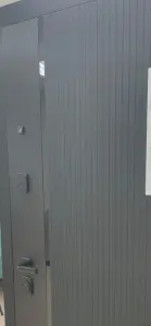 Металическая входная дверь. Тяжелая.Открывается наружу. Два замка, ключи есть 1999г. Проем: 90*210