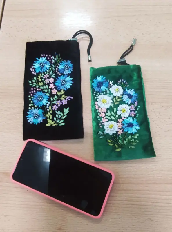 Продам чехлы для очков или телефонов. Сделаны из бархата, расшиты лентами и бисером. Двойная подкладка. Ручная работа.