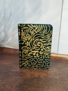 Еженедельник темно- зеленого цвета, формата А6 , 128 листов, закладка ляссе. Расписан с обеих сторон точечной росписью золотистого цвета. Покрыт лаком для защиты от влаги и истирания. Станет отличным подарком к профессиональному празднику и другому подходящему случаю.
