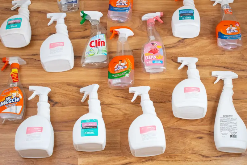 Опрыскиватели, дозаторы, триггер-распылители с бутылками. Количество — много.