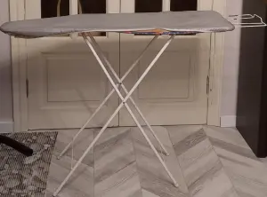 Доска гладильная деревянная, складная с выдвижной подставкой для утюга. Максимальная высота 90см, минимальная - 76см. Возможно 4 положения высоты. Длина 115см, ширина 38см. В сложенном виде 136х36х4см. Вес 5.400кг.