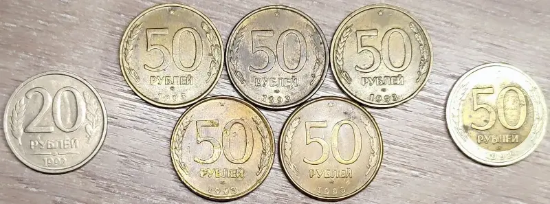 Лот монет номиналами 20 и 50 рублей 1992-1993 ЛМД и ММД общим количеством - 7шт: