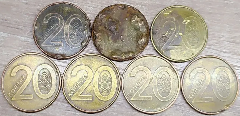 - Вздутия и отслоения верхнего слоя монеты - 3шт (фото №3-5)