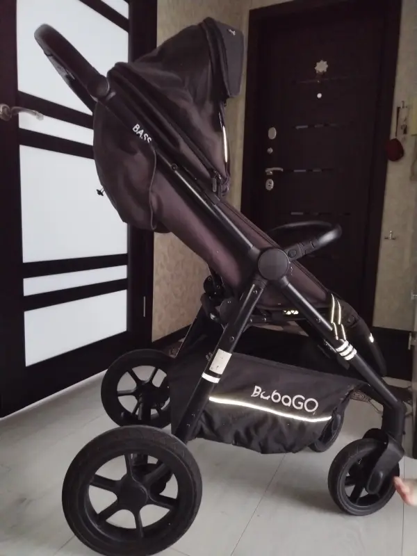 Детская прогулочная коляска Bybba goy bass. В хорошем рабочем состоянии. Не большие потёртости на пластике. Без пятен. В комплекте рюкзак, чехлы на колеса, матрас в коляску, чехол на ножки.