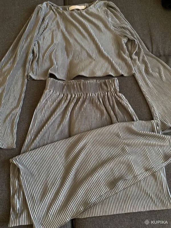 Костюм серебристый, легкий, без затяжек, на рост 160-170, мягкий, по стирке деликатная использовалась