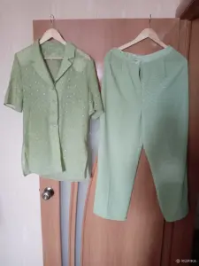 Тройка ( брюки, жилетка и жакет) 42 размер Жилетка : Полуобхват груди 43, длина жилетки 50. Жакет - полуобхват груди 48, длина 71, рукав 60, плечо 38, Брюки...