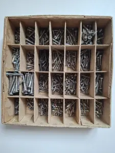 Коробка с шурупами около 700 шт. Не были в употреблении. Коробка с крышкой из плотного картона размером 20х20 см. Цена за всё 20 руб.