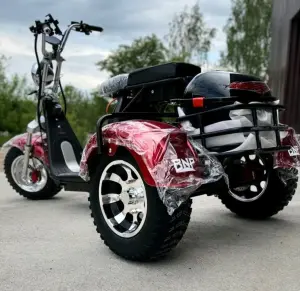 Колесо 2кВт, макс скорость 60км/ч, двухместный, NFC ключи, сигнализация, круиз контроль, Led фара, 3 передачи, дисковые тормаза, газо-масленные амортизаторы, б/у 2 месяца.