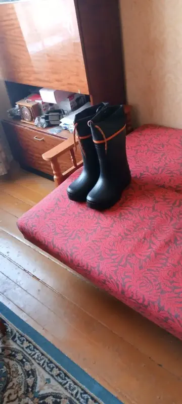 Сапоги мужские новые цельнолитые, с манжетой и термочулками и с толстой рифленой подошвой. Высокие, с затягивающимися манжетами на шнурках. Идеальны для рыбалки/охоты/туризма/дачи и дождливой погоды. Размер 42/43. Без торга. Почтой не высылаю. Звоните. Сообщения не читаю.