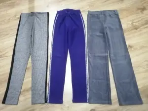 Леггинсы серые (слева), фирма MF - длина 85см, шаговый 65см, полуобхват бёдер 35см, по талии 60см, не растягивая, на эластичной резинке.