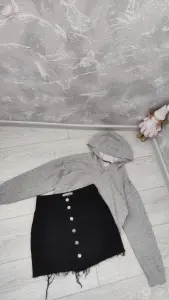 Красиво смотрится под укороченный топ с длинным рукавом (фото 7). Длина 37см, рукав 53см, полуобхват груди 37см. За 15 руб.