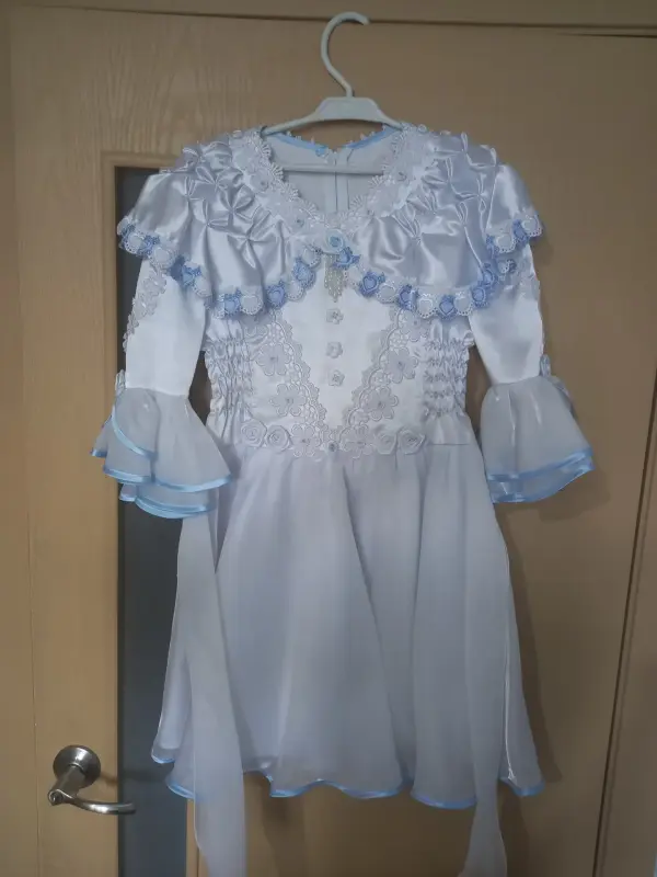 Детское праздничное платье с подъюбником. Сзади застёгивается на молнию и на талии перевязывается поясом. Бант в подарок. В отличном состоянии, одевалось пару раз.