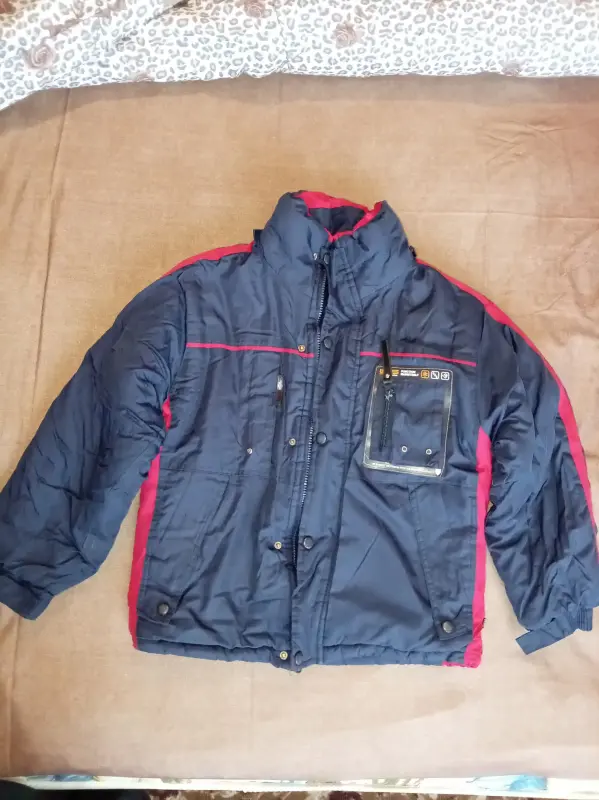 Куртка на зиму мальчуковая на сентипоне. Б/У. Подкладка флис, на молнии с кнопками, четыре кармана на молнии.Длина изделия 57см, полуобхват груди 46см, длина рукава 48см. Возможна доставка почтой за ваш счет. Торг уместен . Звонить