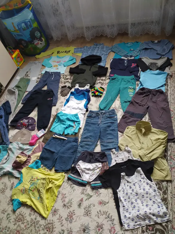 Одежда мальчику. 2-3 года и до 4 лет. Цена за все! Одежды очень много, как на фото. Штаны, кофты, колготки, майки, рубашки, перчатки, шапки, шорты и т.д. . Недорого. Район метро Петровщина либо любой почтой.