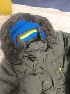 Очень тёплая, рукава на резинке, мех натуральный, на замках светоотражающие элементы. Продаю дёшево, потому что нужно перешивать замок и ткань возле молнии немного порвана (на фото).