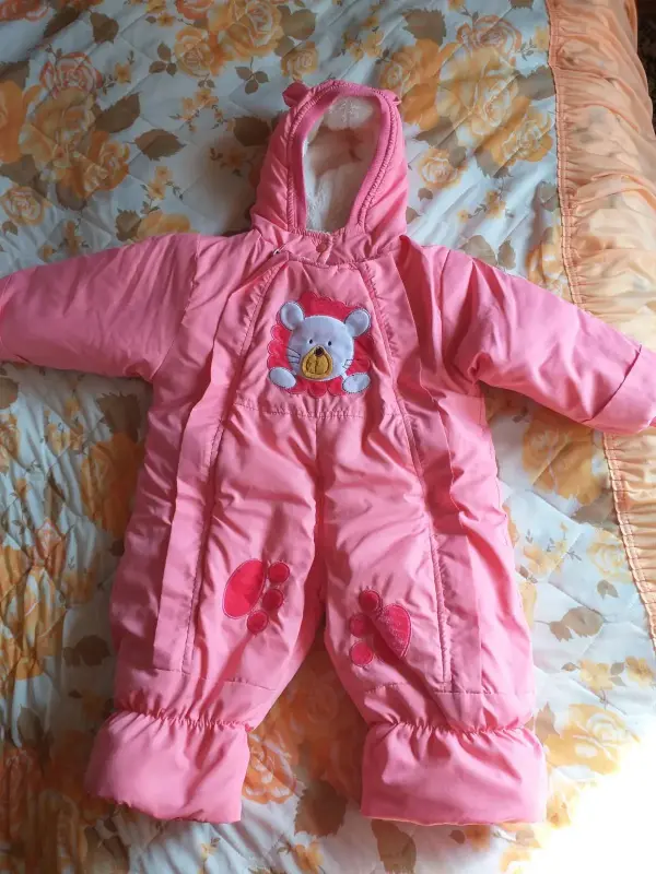 Комбинезон розовый (XXL) зимний от 8мес-1.8г, Китай, мы носили от 8 месяцев до 1.8г, т.к. низ штанин перешила под сапожки-дутики, б.у, состояние идеальное, очень теплый, гуляли при -10градусах, не замерзли.