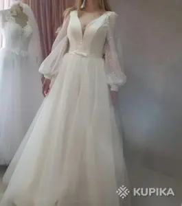 Продам красивое,блестящее свадебное платье Размер 42-46(регулируется шнуровкой) Мой рост (168) Платье после химчистки(в некоторых местах блестки отвалились,но...