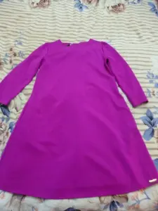 Платье б/у в отличном состоянии. Красивое, элегантное, удобное платье. Платье имеет два боковых кармана, на спине декоративный бант (в районе шеи) и складка. Цвет платья ближе к цвету цветка "Фуксии".