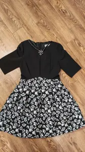 ОГ =92, ОБ=100, ОТ= 76-78, рост170, 100% полиэстер, подкладка 100 % хлопок. сзади Vобразный неглубокий вырез, приталенное, пояс из искусственной кожи. Платье переливается на свету, ткань с выпуклыми цветами. Надевалось один раз на НГ.