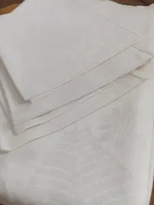 Продается комплект на 6 персон времён СССР,новый. Скатерть 150*200,шесть салфеток 35*35.Качество лен плюс хлопок. 50 руб. Ошмяны
