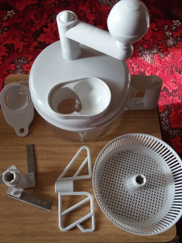 Многофункциональное кухонное механическое приспособление для измельчения, взбивания и сушки продуктов.