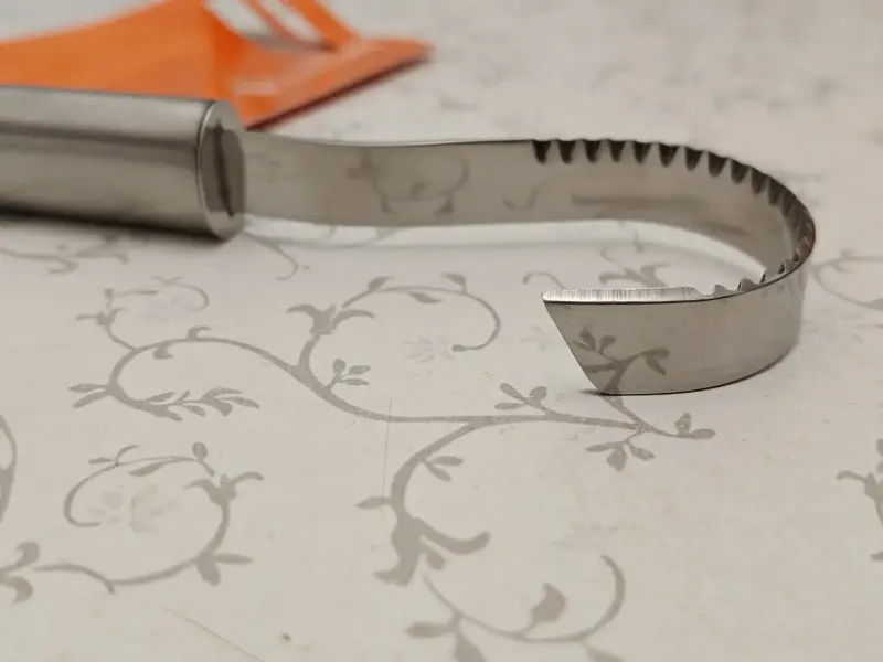 В качестве примера фотографии №6,7,8,9 демонстрируют возможности в использовании данного изделия при работе со сливочным маслом. Данный нож позволяет декорировать закуски заготовками сферической формы диаметром 4 см.