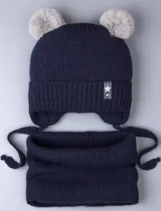 Продам теплый зимний комплект: Шапка с помпонами + снуд (темно-синий).