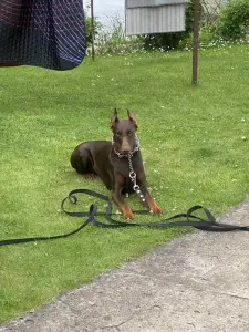Девочка доберман возраст 2 года,шоколадно-подпалый окрас приглашает мальчика на вязку!Не развязана.Документы не обязательны!Срочно!