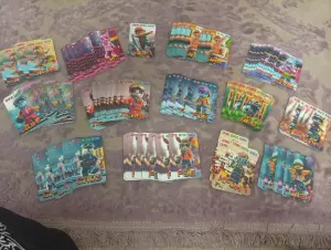 Калекцыоные карточки или игра,в наборе не по одной штуке с каждым героем(каждый герой 3 карточки)почти новые.