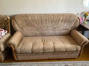 Кресло одноместное не раскладывается. Есть протертости, но они перекрываются покрывалом для кресла. Кресло 30 белорусских рублей.