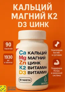 Кальций Магний Цинк Д3 К2 — витаминно-минеральный комплекс для здоровья костей, суставов, сердца и иммунитета!