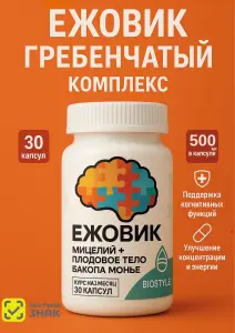 Ежовик Гребенчатый капсулы и бакопа Монье — натуральный БАД для мозга и памяти, который поддерживает когнитивные функции, улучшает внимание и концентрацию, а также повышает жизненную энергию.