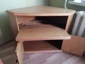 тумбочка угловая с выдвижным столиком под комп или тв. б.у в хорошем состоянии.