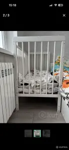 Кроватка со всей комплектацией. Матрас, маятник, боковая стенка. Регулируется матрас по высоте. Есть следы эксплуатации.
