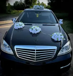 Комплект: "Кольца с композицией - 70р (Кольца с цветами+ композиция из цветов на капот+ растяжка из фатина+ зеркала+ручки)