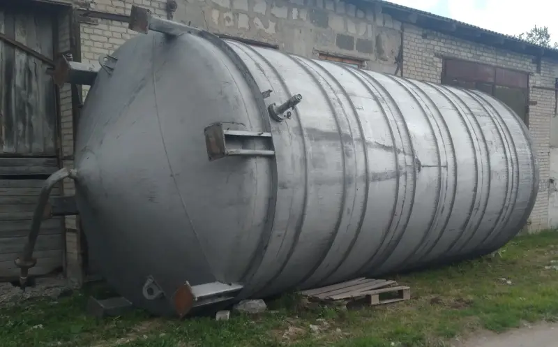 Емкость нержавеющая, вертикальная, марка стали 12х18н10т, объем 50 м. куб, высота 9 метров, диаметр 3 метра.