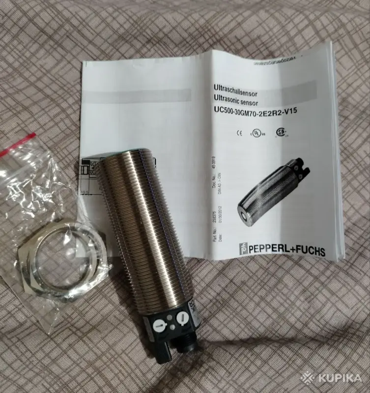 Ультразвуковой датчик расстояния UC500-30GM70-2E2R2-V15 производства Pepperl+Fuchs в цилиндрическом корпусе М30 на диапазон до 500 мм с двумя дискретными выходами PNP NO/NC. Точка переключения настраивается двумя потенциометрами на корпусе. Ультразвуковой датчик UC500-30GM70-2E2R2-V15 обладает широкими возможностями по настройке параметров с помощью встроенного инфракрасного порта и интерфейса для ПК. Для настройки используется интерфейс UC-18/30GM-IR и программное обеспечение ULTRA-PROG-IR. Температурная компенсация.