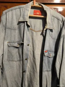 Две рубашки. Материал: 100% хлопок. Любимый цвет 80-х годов прошлого века "варёнка"(выцветший голубой). Длинные рукава. Первая (фото 1-4). Manhattan country...