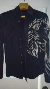 Мужская черная рубашка с орнаментом в хорошем состоянии. Торг уместен. Высылаю почтой наложенным платежом.