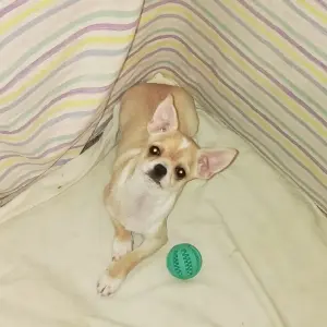 Девочка породы Чихуахуа стандарт, тип кобби, весит 3 кг, возраст 3,5 года. Ест корм Pedigree. Стерилизована. Ходит на пелёнку.
