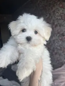 Щенки мальтийской болонки(мальчик и девочка)2 месяца,выполнена первая прививка .Кушают сухой корм и ходят на пеленку .