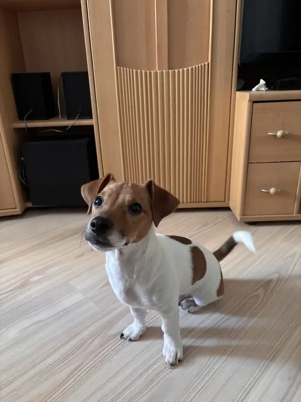 4,5 месяца мальчик, знает команды и ходит на пеленку, все прививки сделаны