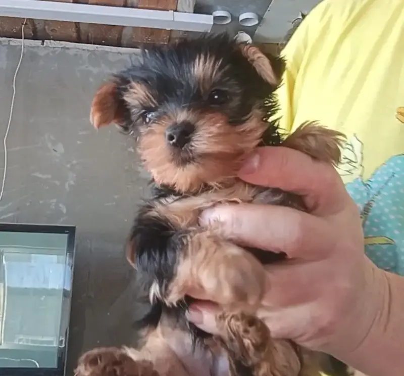 Йоркширский терьер мальчик ест корм Royal Canin Starter. Возраст 1,5 месяца. Дважды проведена дегельминтизация. Мама 2 кг, папа 2,2 кг. Гомель.