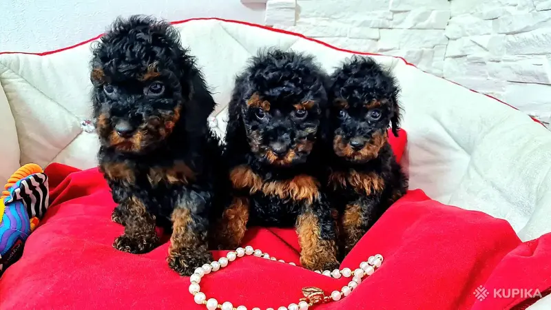 Той пудели. Мальчик и 2 девочки, чёрно-подпалые. 244587