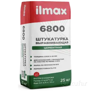 Ilmax 6800 штукатурка цементная выравнивающая 25кг.