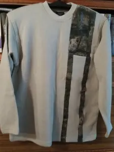 Футболка мужская с длинным рукавом, размер 50 (L ). Производство: Турция, 100% хлопок, цвет светлой зелени, спереди отделана другой (под замшу) тканью, имеется нагрудный карман, низ и рукава прямые, внутри утеплена. Ширина в груди 54 см, плечо 16 см, рукав 60 см, длина 70 см.