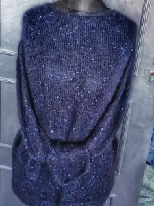 Очень красивый, сверкающий джемпер. Надела один раз. Мне, к сожалению, короткий. Замеры сделаю. Без торга.