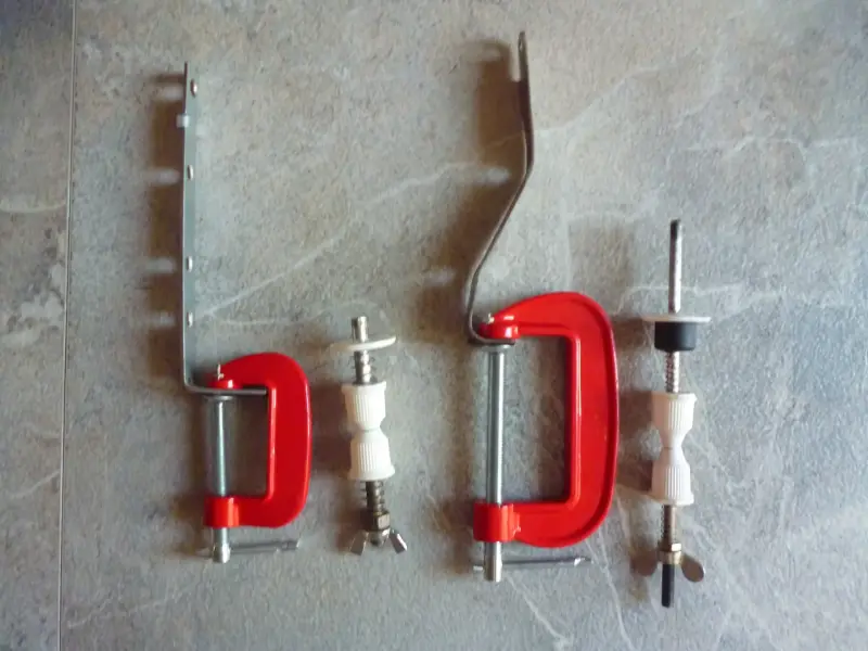 Намотчики крепко крепятся к столу, табуретке, стулу и т.д. (фото №3-8) при помощи струбцины. Максимальная толщина поверхности, на которую можно закрепить намотчики: левый = 45мм, правый = 75мм. Высота от поверхности стола до шпильки у обоих = 15см. Шпильки можно располагать (прикручивать к стойке) как с правой, так и с левой стороны, кому как удобно (фото №3-4). Длина шпильки, регулируемая за счёт гайки и «барашки», составляет: левый = 9см – 10см (для стандартных бобин лески), правый = 15см – 17см (что позволяет работать как со стандартными, так и не стандартными длинными бобинами). На струбцинах с внутренней стороны верхних «губ» приклеена защитная резинка, от повреждения поверхности. При помощи пластмассовой стопорной шайбы, на шпильке сверху (фото №1 для левого, а для правого чёрный стопор) и пружин регулируется сжатие бобин с леской, что позволяет контролировать натяжение при наматывании лески на катушку. Для правого предусмотрена вторая стопорная шайба первая белого цвета (фото №1). Её роль заключается для крепления не стандартных узких бобин (фото №7-8)! При наматывании бобина крутиться ровно, под натяжением. Можно выбрать практически любое удобное расстояние между удилищем и намотчиком. Намотчики подходят, по внутреннему диаметру, практически ко всем стандартным бобинам с леской!!! На фото №9 бобины с внутренним диаметром: 12мм, 15мм, 17мм, 18мм, а также подходят к бобинам с шестигранным отверстием (фото №5, дальний намотчик и фото №9 посредине). И поверти на слово, всё работает идеально. Заметьте, что и толщина бобин, представленных на фото разные.
